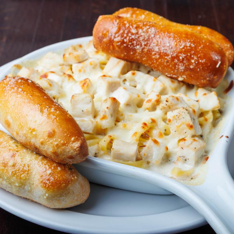 A full 3/4 lb of fresh-baked cinnamon sticks made from our hand-tossed dough. Brushed with butter, then coated with lots of cinnamon sugar. Served with sweet vanilla icing.