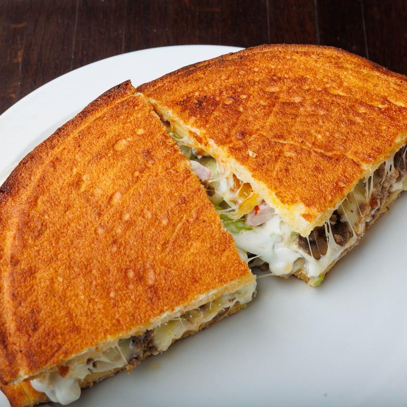 Choice sirloin steak, mushrooms, sweet peppers, onions & cheese.